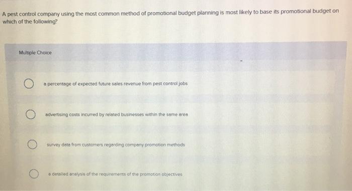 Solved A Pest Control Company Using The Most Common Method Chegg Com
